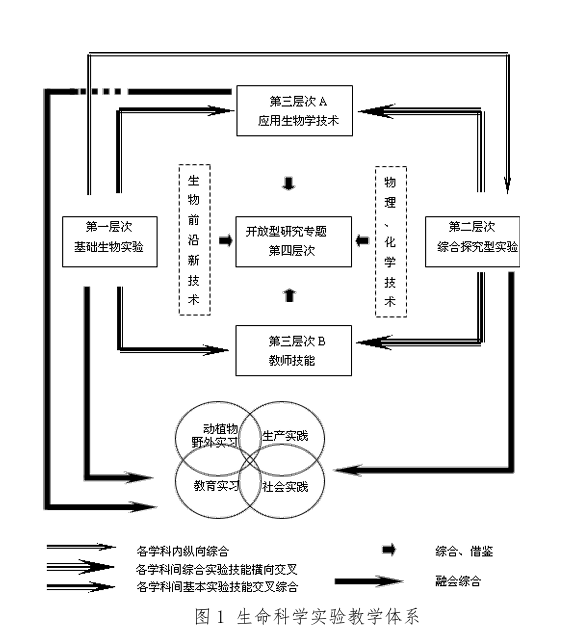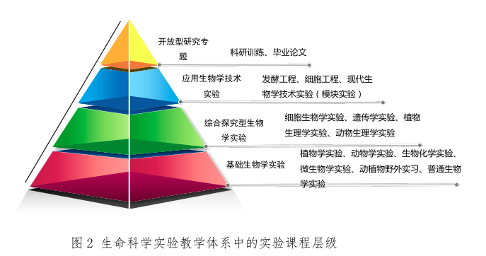 实验教学体系是人才培养体系的骨架,中心确立“以学生学习过 程和学习效果为中心”的建设思路,构建了一个既相对独立又与理论 课程紧密衔接的,包含基础生物学实验、综合探究型实验、应用生物 学技术和教师技能训练、开放型研究专题的“四层次、多模块”的实 验教学体系。前三个层次为卓越人才提供强大的后驱力,通过转变教 与学的形态和学生学习方式来打造一流课程,最高层次则以科研实践 成为卓越人才的前驱力,在高水平实验平台的自由探索中帮助学生开 拓视野,形成大格局。围绕这一体系,中心从软硬件、课程与环境等 12 多方面着手、营造一个“从研究中学习、在学习中研究”的学术氛围, 激发学生对科学问题关注,鼓励他们立志于科学创新、培养他们成为 “有情怀、厚基础、宽视野、善交叉、强创新”的卓越人才。 开放型研究专 题 科研训练、毕业论文 应用生物学技术 实验 发酵工程、细胞工程、现代生物学技术实验(模块实验) 综合探究型生物 学实验 细胞生物学实验、遗传学实验、植物 生理学实验、动物生理学实验 植物学实验、动物学实验、生物化学实验、 基础生物学实验 微生物学实验、动植物野外实习、普通生物 学实验